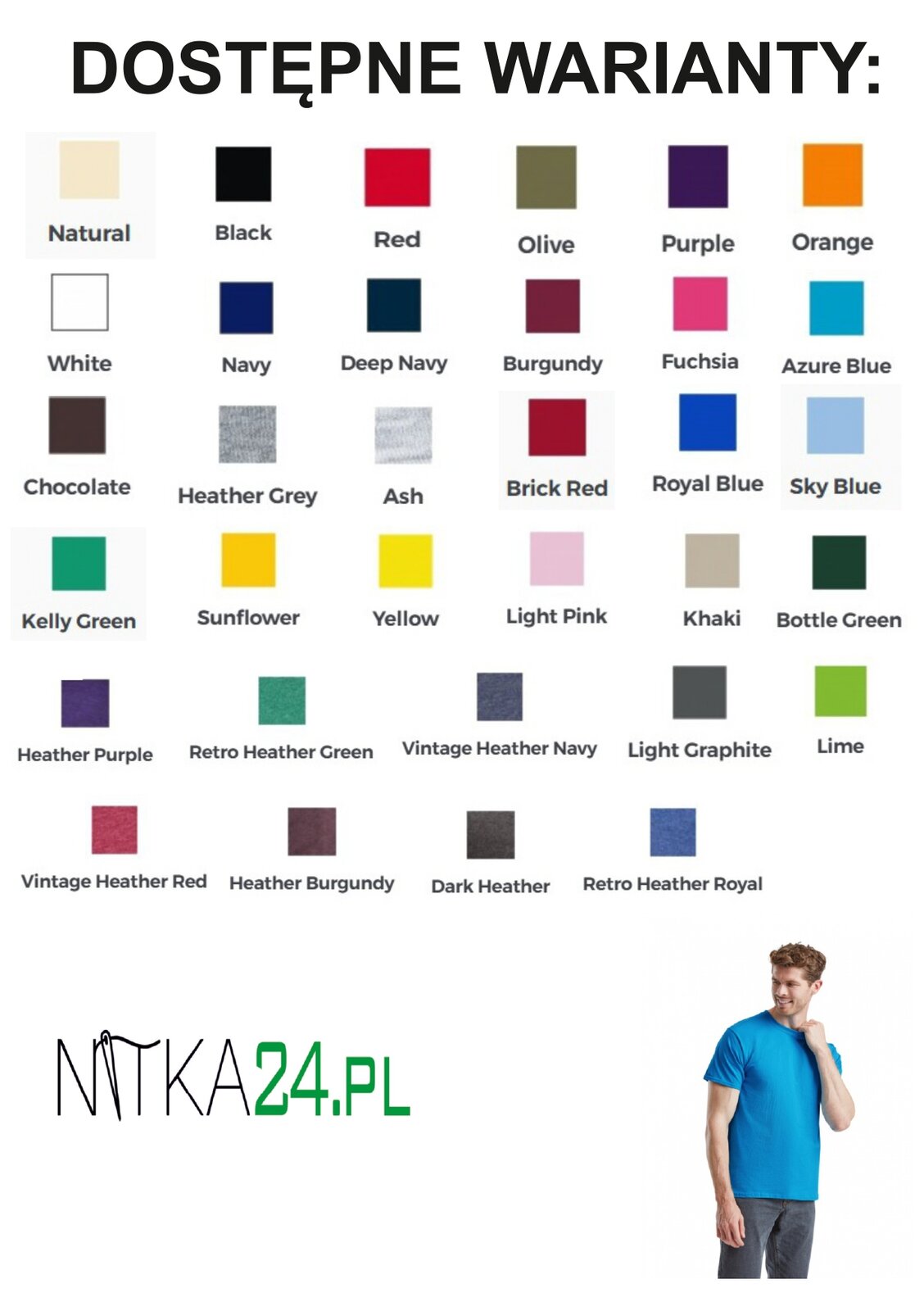 W naszej ofercie znajdziesz klasyczny T-shirt N24-TSH-61-036-0F – niezawodny wybór dla firm, które cenią styl, wygodę i solidne wykonanie. Model ten wyróżnia się standardowym krojem i dopracowanym wykończeniem, w tym dekoltem wykończonym ściągaczem z dodatkiem Lycry oraz taśmą wzmacniającą na karku. Uszyty w 100% z wysokogatunkowej bawełny o gramaturze 165 g/m², gwarantuje komfort noszenia i trwałość. Wersja męska i damska dostępna w aż 33 kolorach, a w wariantach white, black, navy i heather grey – także w szerokiej gamie rozmiarów od S do 5XL. To idealna baza do znakowania – zarówno haft komputerowy, jak i transfer DTF sprawdzą się znakomicie. Dzięki temu koszulka N24-TSH-61-036-0F stanie się Twoją wizytówką i narzędziem promocji, które zawsze się sprawdzi.